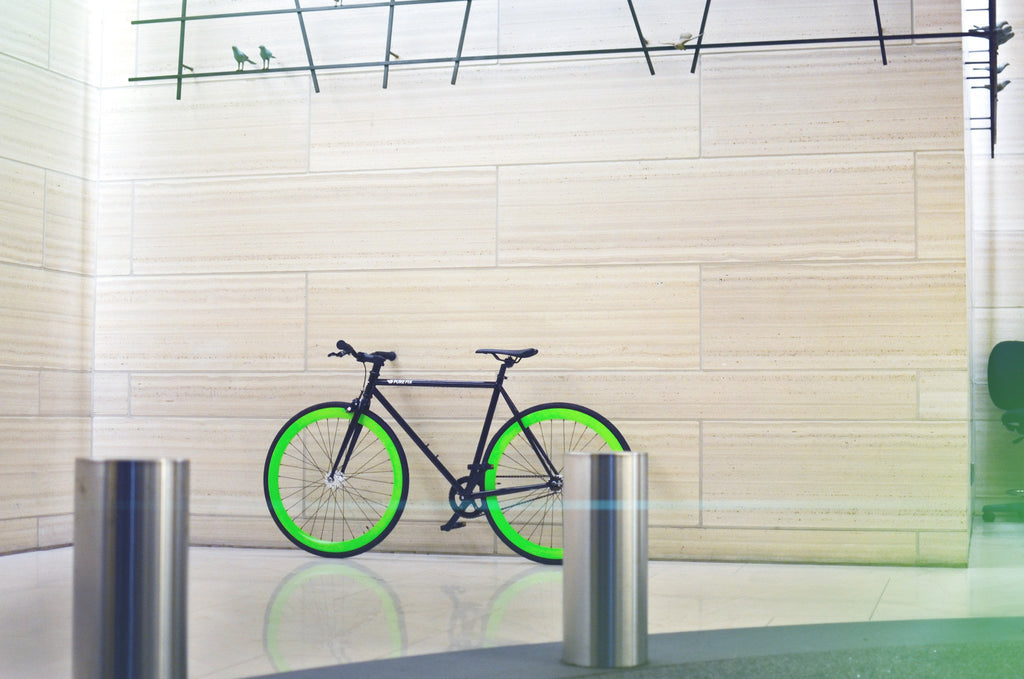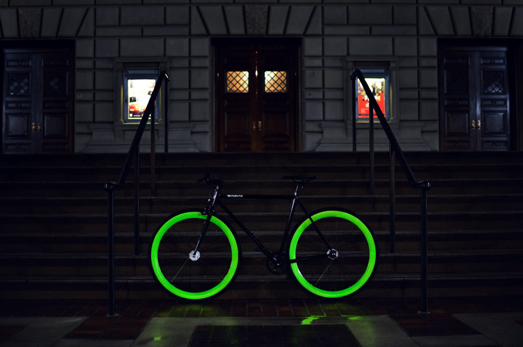With a black frame and green wheels that shine into the night, you'll look as good as glow! Get ready to take your night riding to a whole new level. After months of experimentation, we've perfected the GLOW, our newest line. The name says it all, it actually glows. The paint is solar-activated, so just give your bike an hour of daytime sun for an hour plus of night-time fun. Whether you're a night owl, a raver, or just want to trip out your friends, this is the bike for you.
